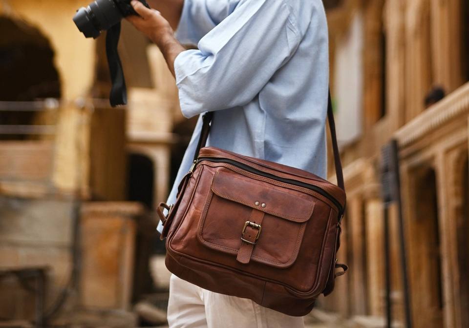 Crazy Horse Leather Camera Messenger Bag for DSLR Mirrorless Waterproof Durable Travel Accessory Adjustable Strap Large Capacity