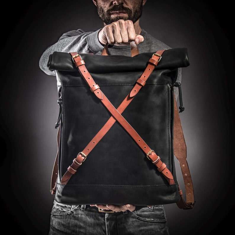 Product name:Leather Roll Top Backpack
