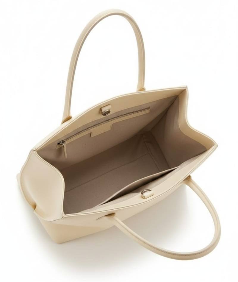 Cream Beige Leather Vintage Lady Tote Bag Women Large Soft Structured Two Water Resistant Shopper Work Office Shoulder Handbag