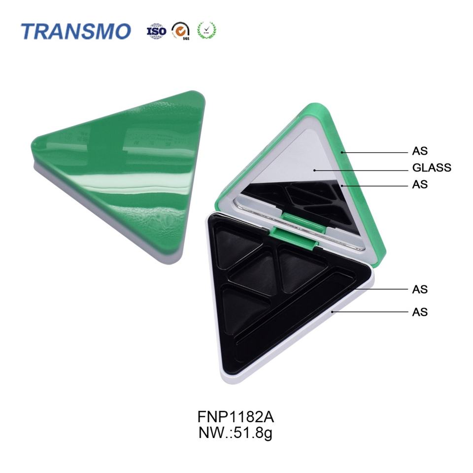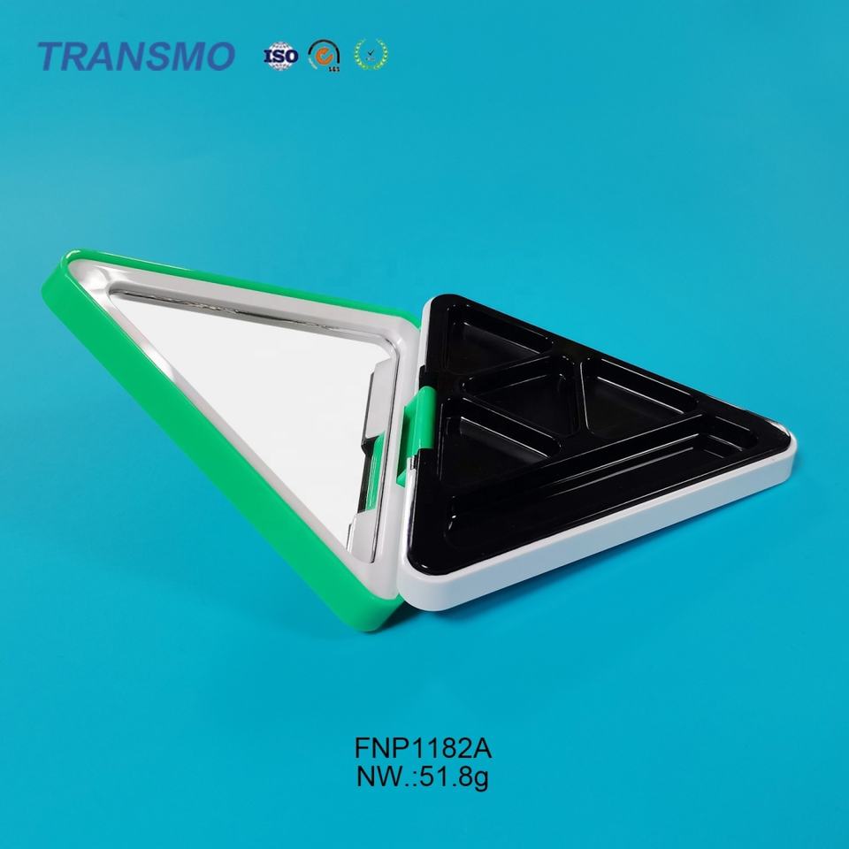 Cream Blush Packaging Mirrored Blush Container Triangle 3pans Eye Shadow case with Brush Slot