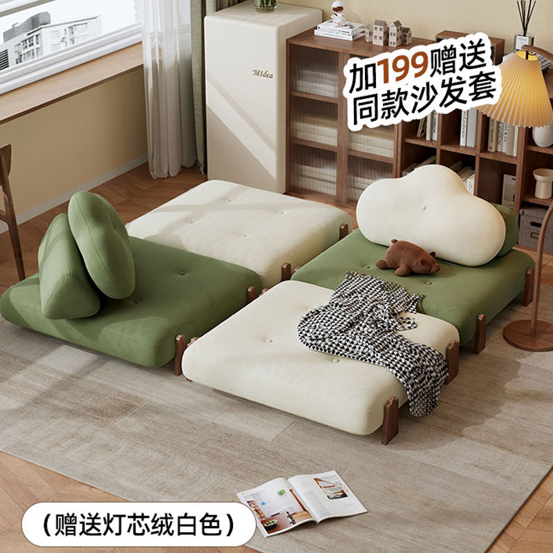 Cream Colored Tofu Block Sofa Bed Foldable Extendable Single Size Multifunctional Tatami Chair With Foam Filling For Children