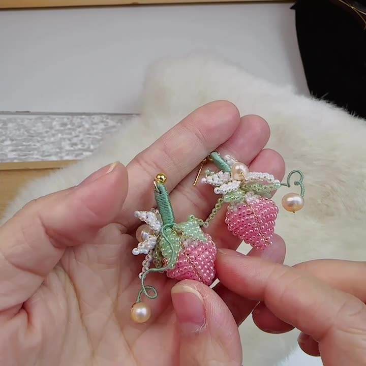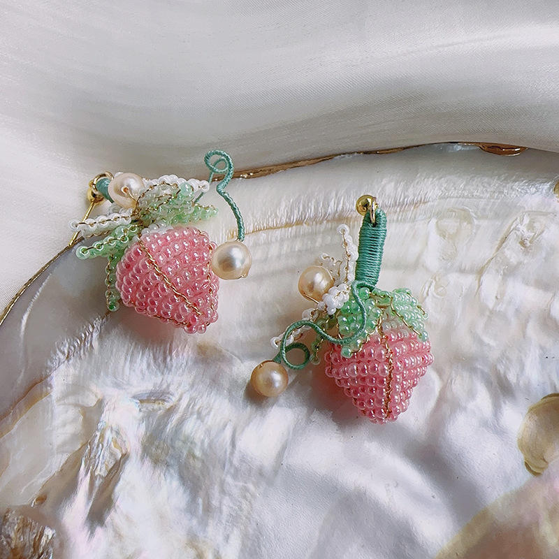 Cream Crystal Glass Strawberry Earrings Element Pink Tender Earrings Light Luxury Jewelry Accessories