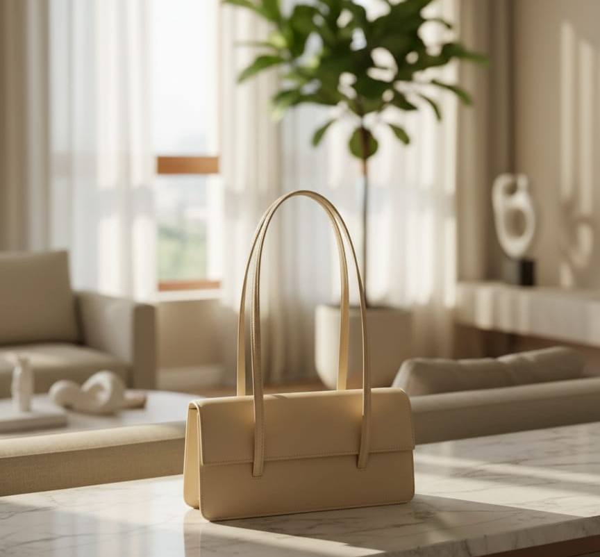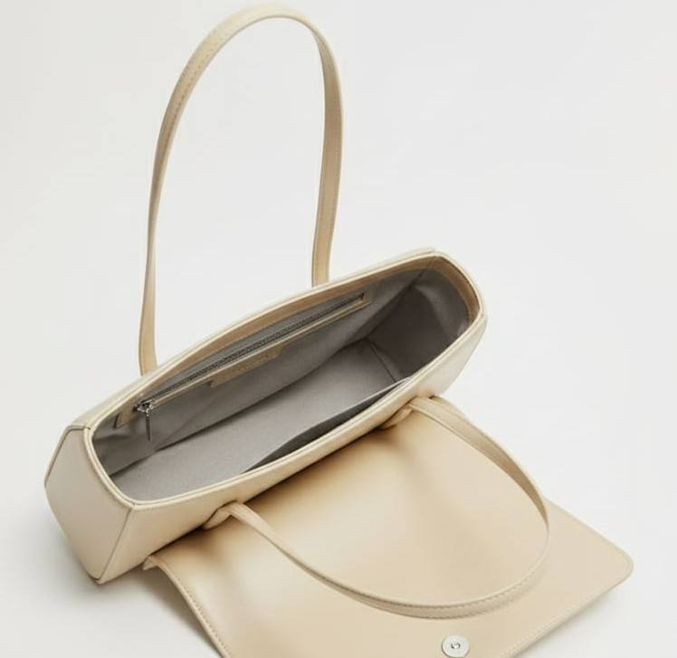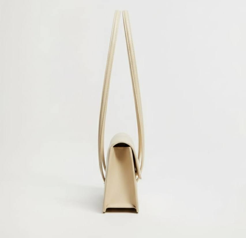 Cream Leather Vintage Fashion Women's Minimalist Rectangular Flap Shoulder Bag Two Straps Structured Handbag Trendy 90s Underarm