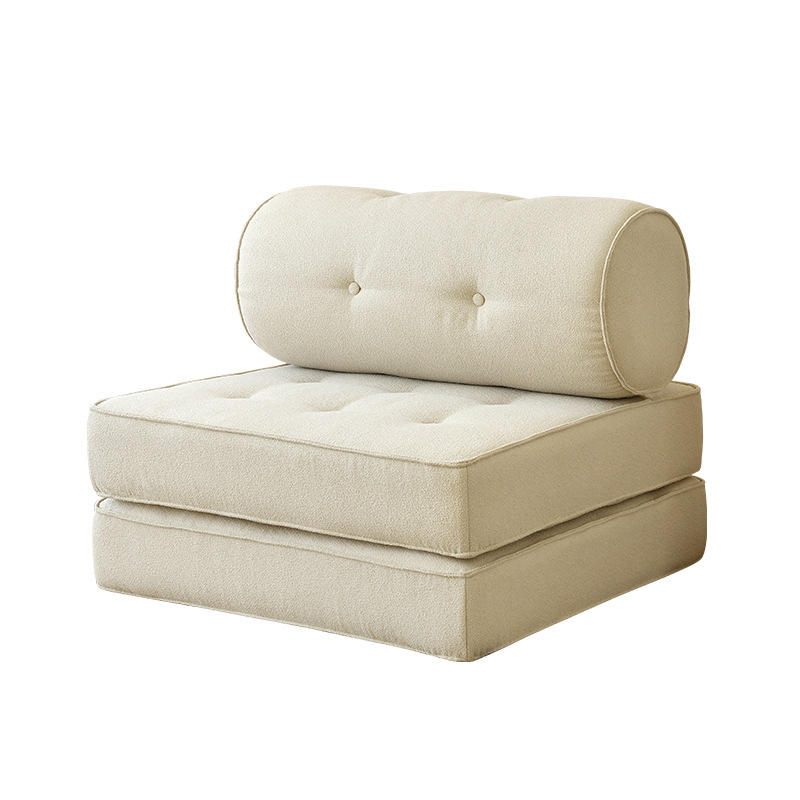 Cream Modular Sofa Bed Square Shape Tufted Foldable Removable Washable Cover Foam Filling L Shaped Design For Kids Adults