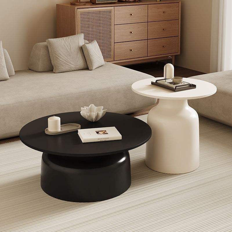 Cream Style Round Coffee Table Resin Top Small Apartment Living Room Furniture Modern Minimalist Design