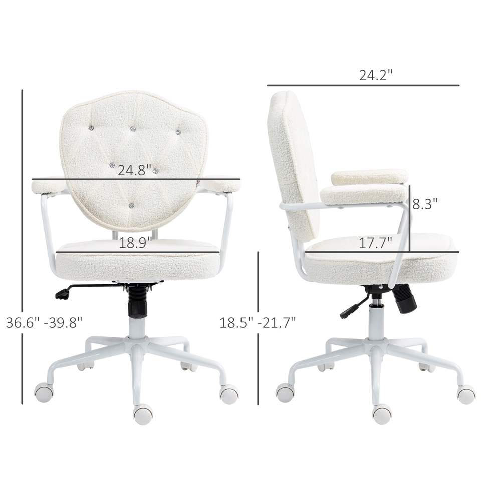 Cream White Tufted Cute Makeup Vanity Chair with Wheels Adjustable Height Soft Task Chair for Girls & Women for Desks