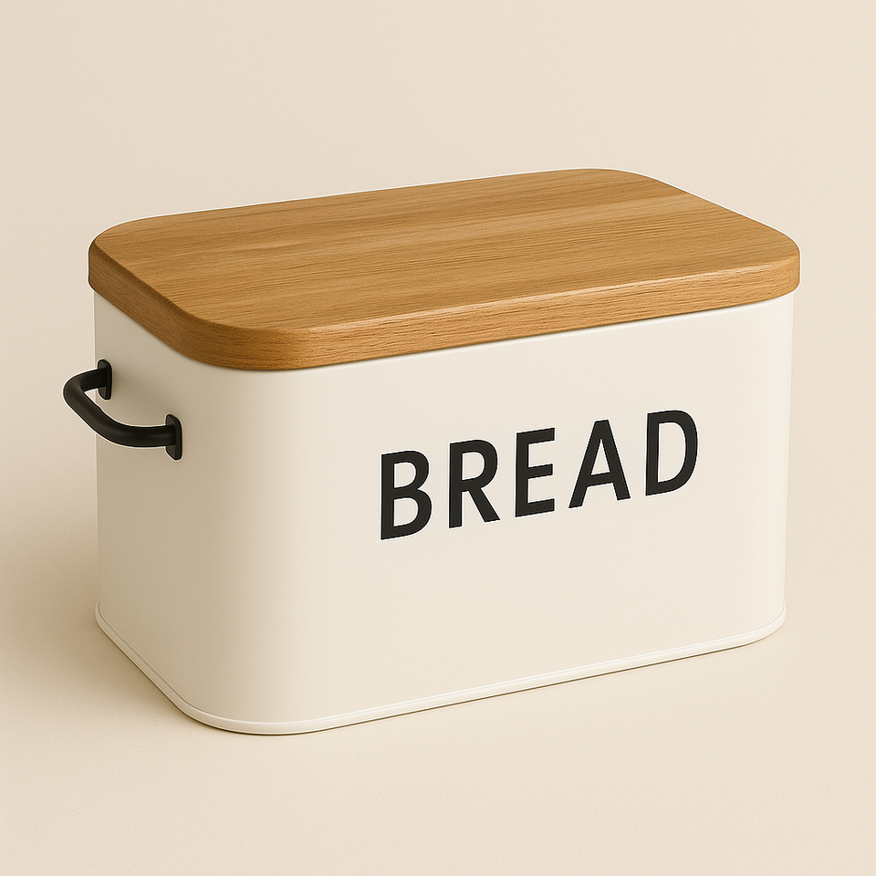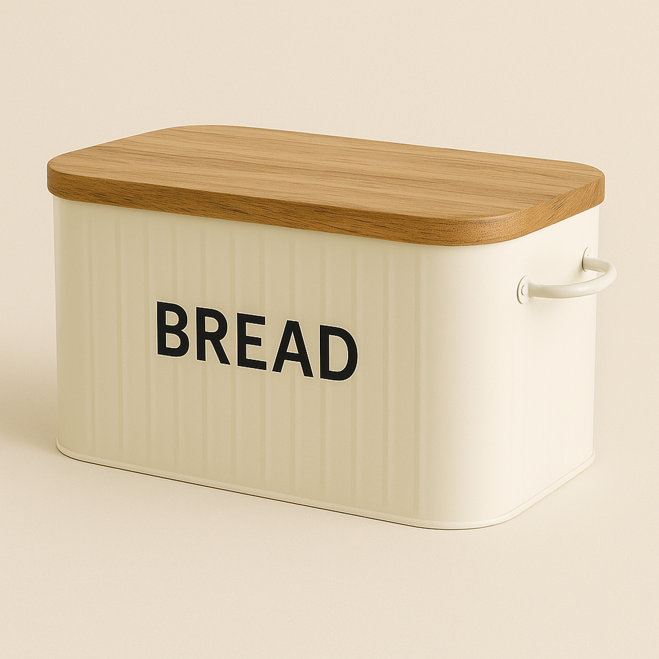 Cream bread box with black lid & side handle modern kitchen metal bin for loaf storage vintage style BREAD container decorative