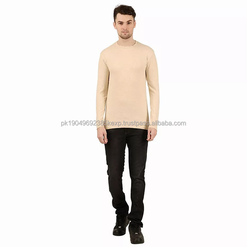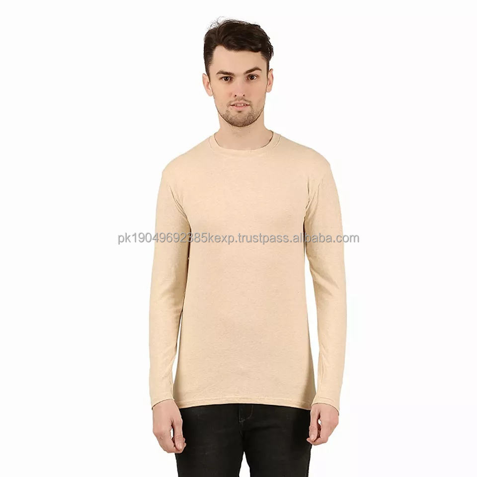 Cream color cotton long sleeve t shirt for men and women unisex blank crew neck top for custom bulk orders