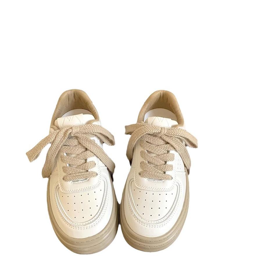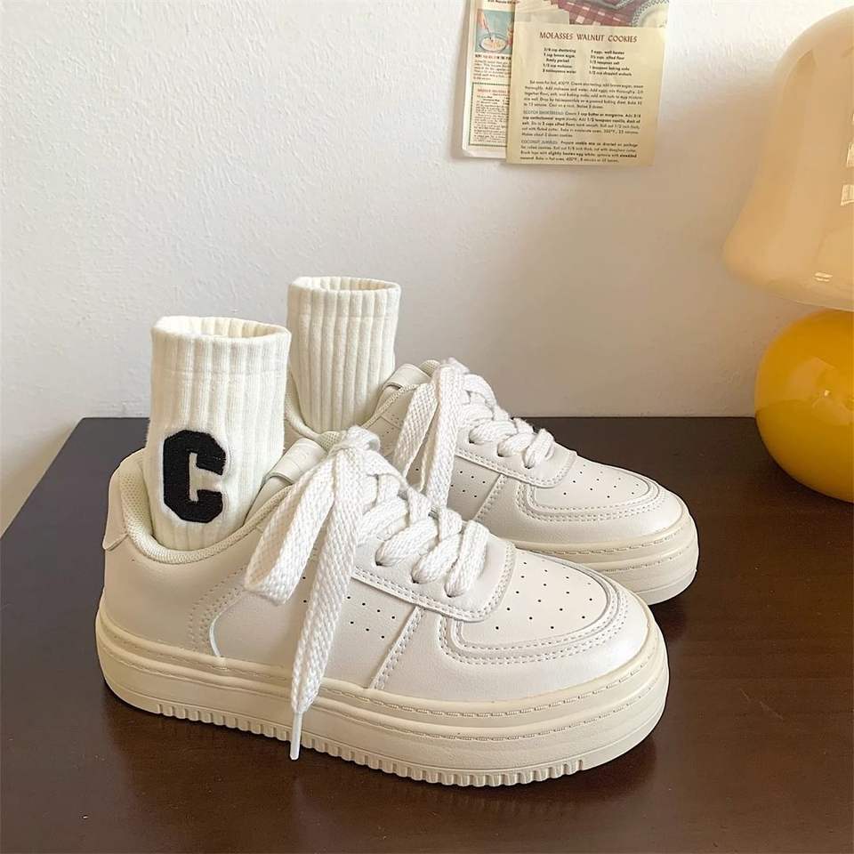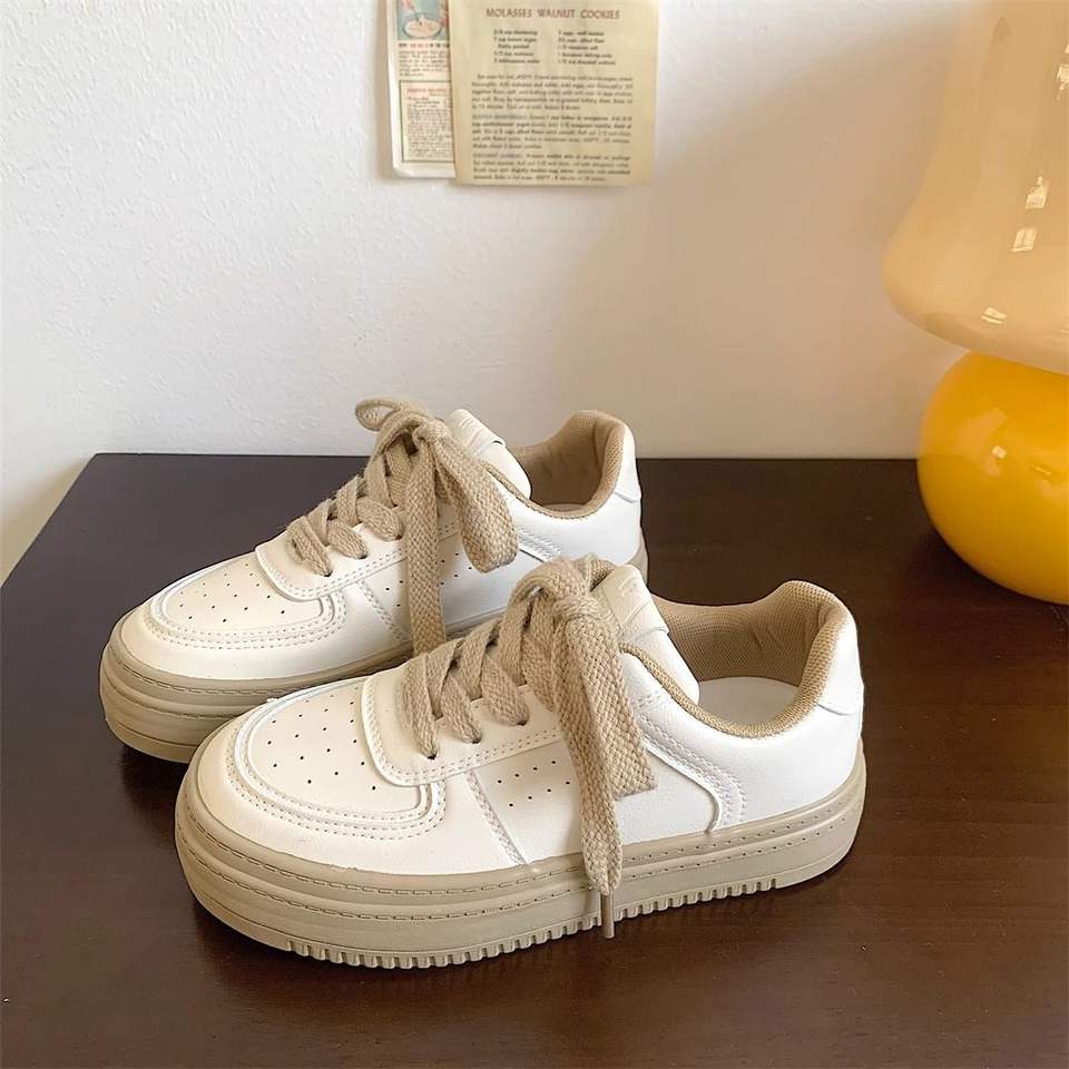 Cream thick-soled white shoes for women leather surface autumn new niche chic versatile bread shoes low-top student board shoes