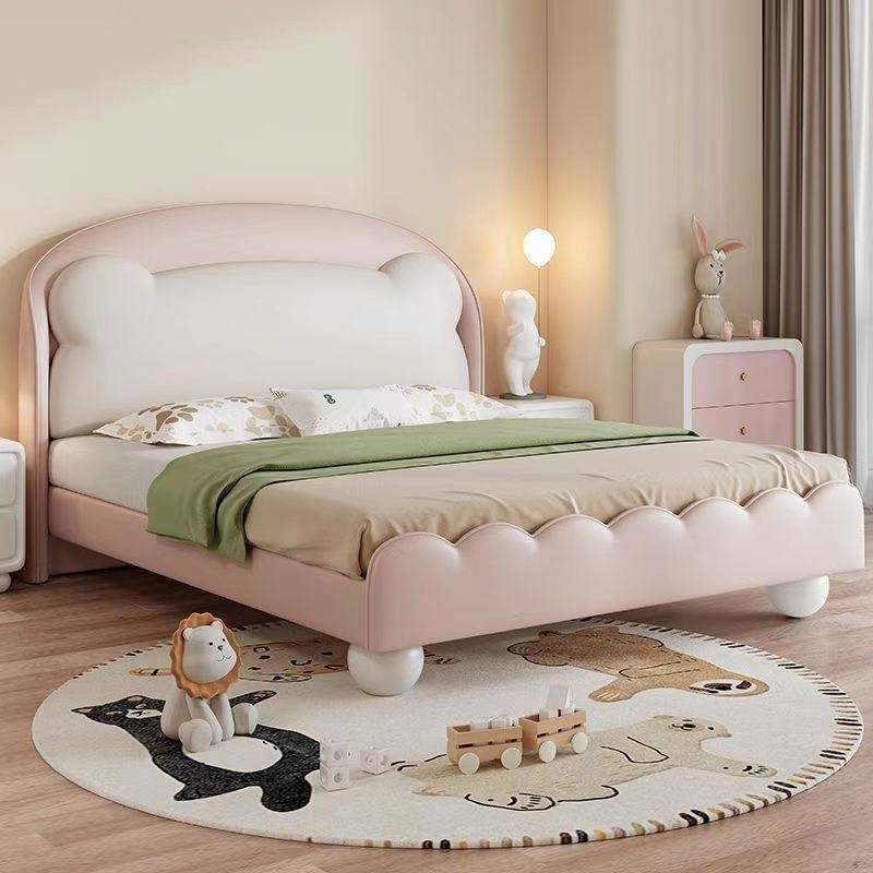 Creamy Cloud Wooden Full Bed for Kids Modern Minimalist Design with Built-in Toy Storage and Adorable Teddy Bear Bedroom