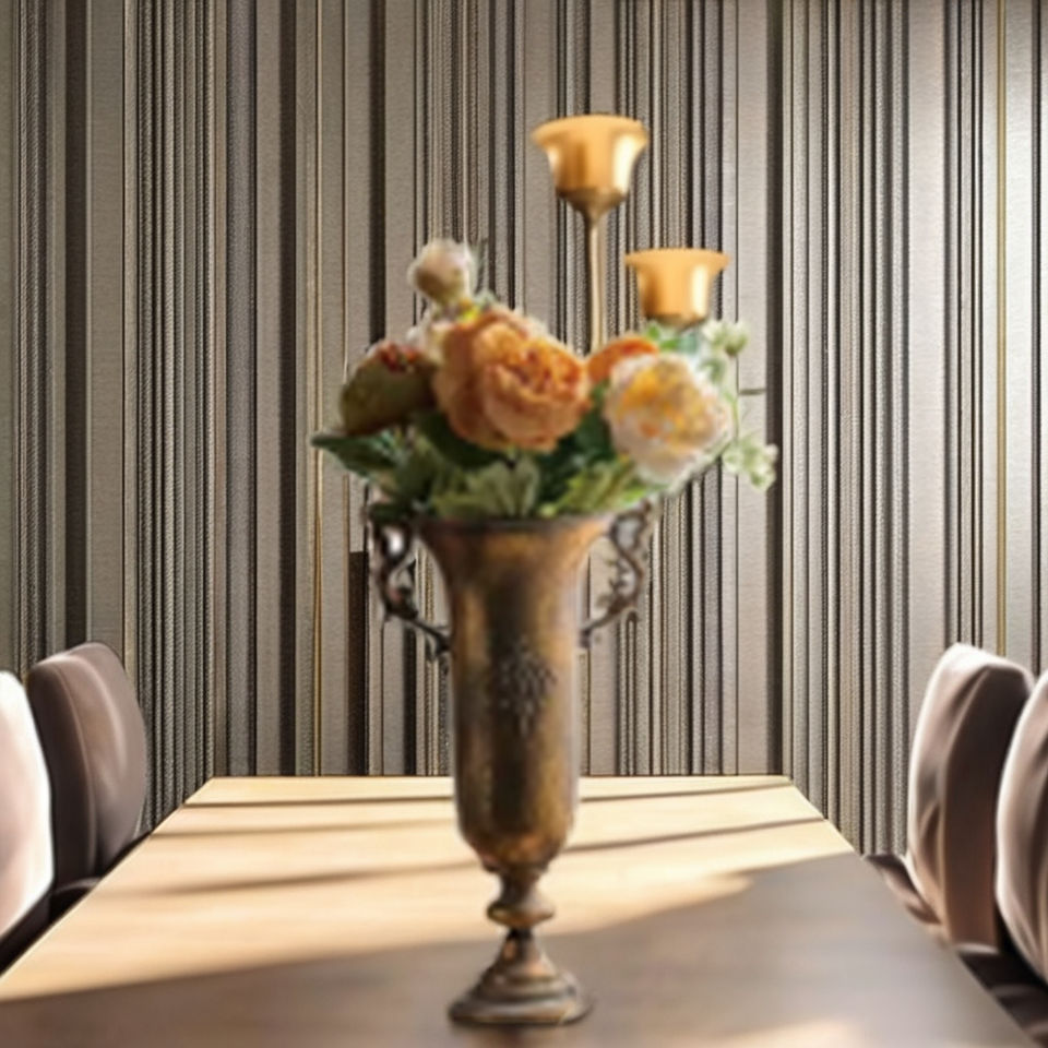 Creative Aluminium metal brass Golden Flower Vase With 2 Handle Stylish Table Ware Decoration Flower Vase and Pots for Home Use