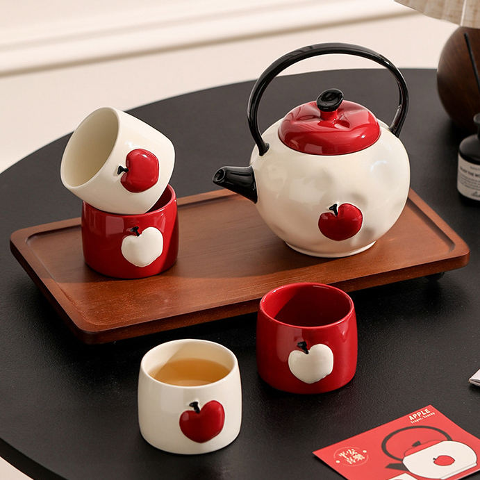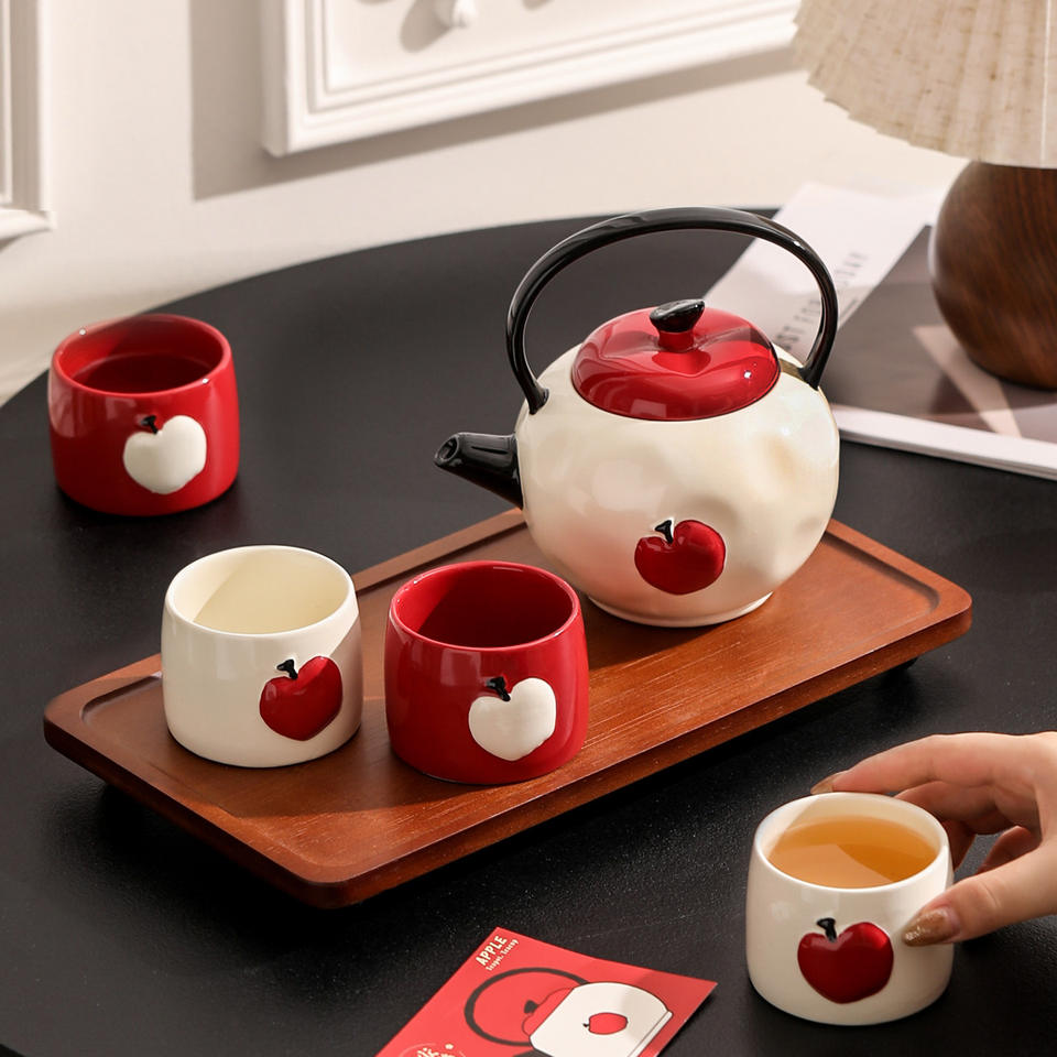 Product Name:Creative Apple Ceramic Tea Set Gift Box Tea Pot Set with Wood Tray