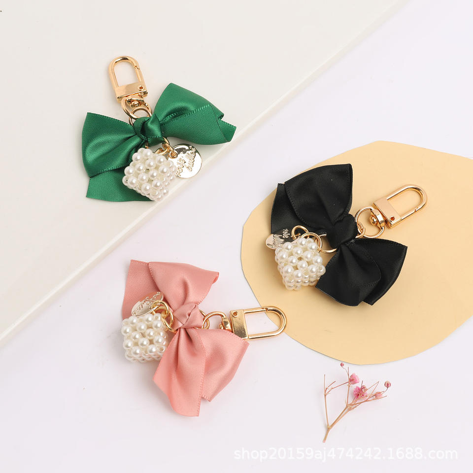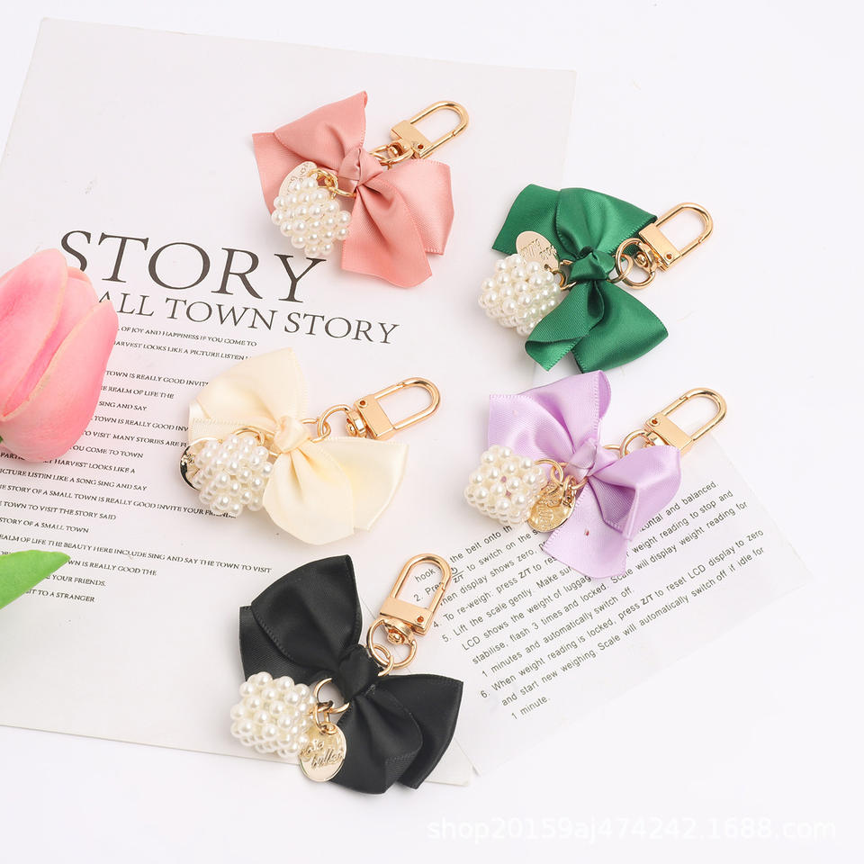 Creative Car Keychain Pendant Fresh Colorful Ribbon Bow Pearl Cube Accessories