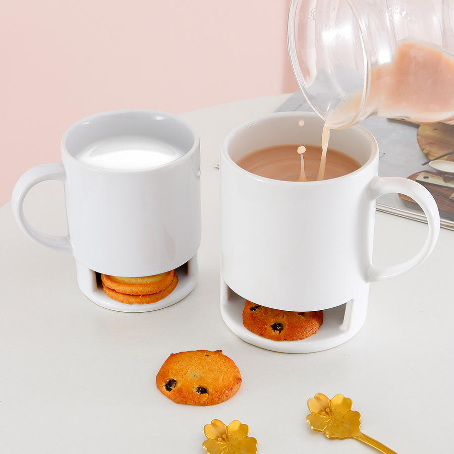 Creative Ceramic Mug With Cookie Holder White Solid Color Cup With Handle For Coffee Tea Drinks Gift Set