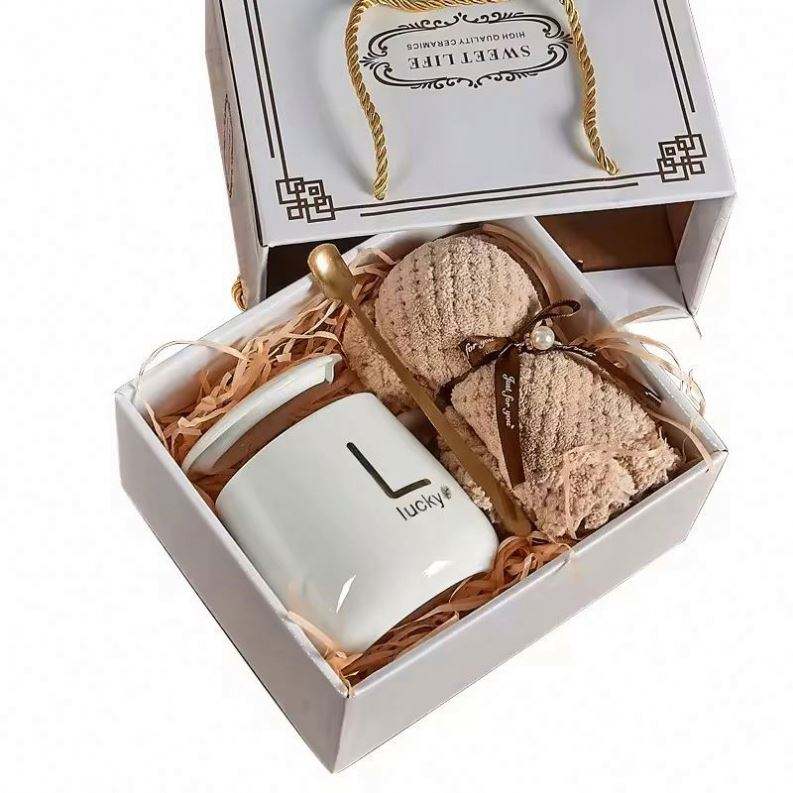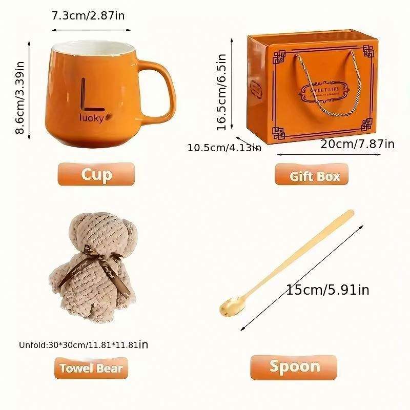 Creative Ceramic Water Cup Gift Set Bear Fan Mug Heating Coaster Towel-for Weddings Birthdays Handcrafted Wedding Souvenirs