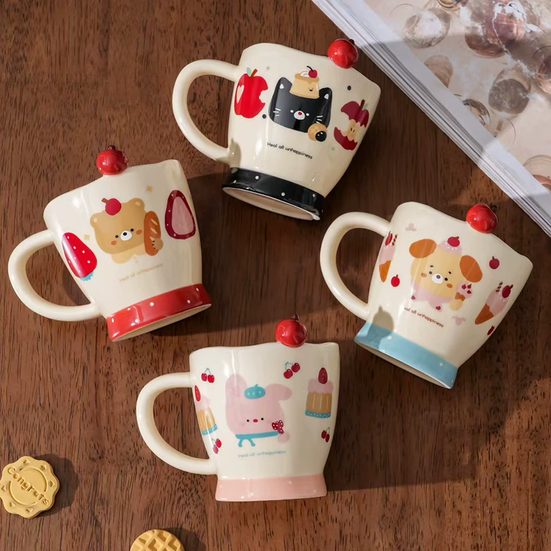 Creative Cherry Cartoon Animal Mug Embossed Three-dimensional Apple Mug