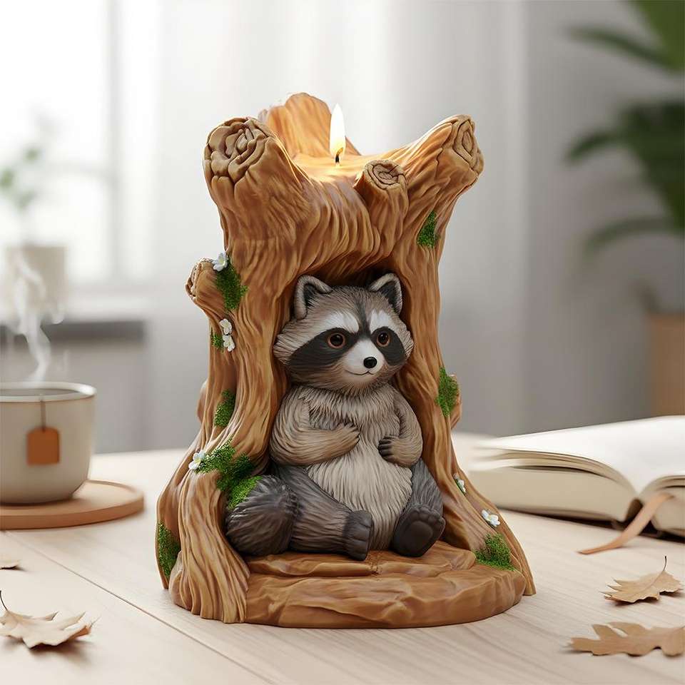 Creative Coati Stump Candle Micro Landscape Animal Raccoon Home Gypsum Epoxy Candle Silicone Mold