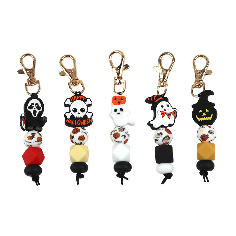 Creative DIY Cartoon Halloween Keychain Pendant Silicone Beaded Small Hanging Ornament Cute Bag Accessory