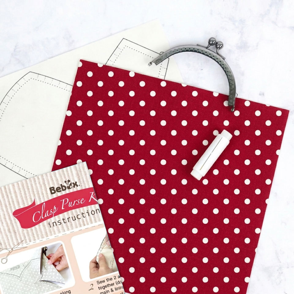 Contents:Outside Fabric, Lining Fabric, Purse Frame, Sewing Kit, Instructions