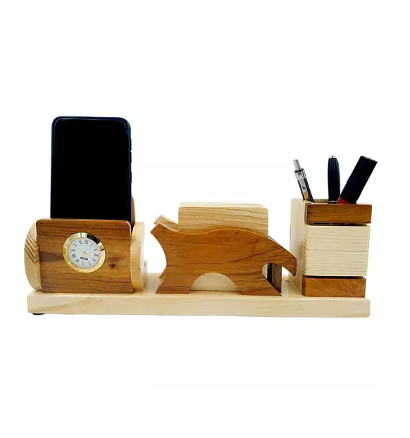 Creative Design Acacia Wood Gift Accessories Watch Design Pen Holder Desktop Organizer Multifunctional Use Factory Direct Sales