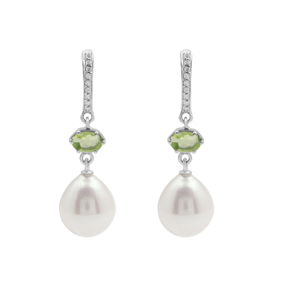 Creative Design Genuine 6x4 MM Peridot & 8x11MM Pearl Gemstone 925 Sterling Silver Long Earrings 5.1 Gram Fine Jewelry Wholesale
