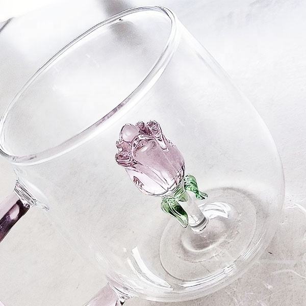 Creative Eco-Friendly Borosilicate Glass Mugs 3D Rose Flower Design European Style 400ml Capacity 9cm Height for Wedding