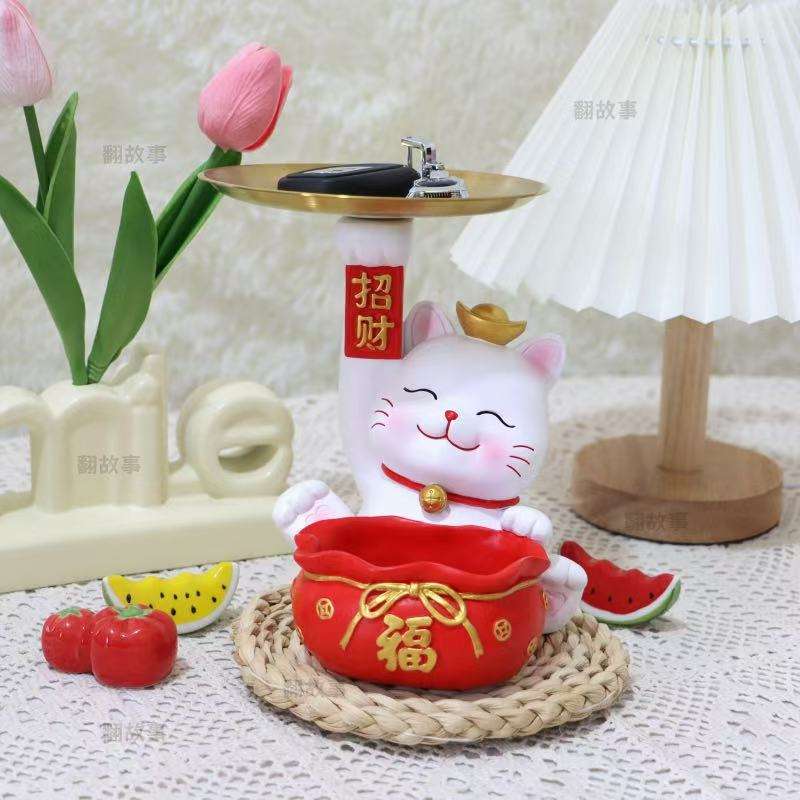 Creative Epoxy Resin Sculpted Lucky Cat Figurine-Home Decoration Ornament for Living Room Entrance TV Cabinet Housewarming Gifts