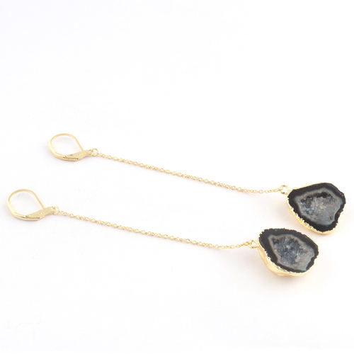 Creative Fashion Natural Black Geode Druzy Gold Electroplated Earrings Long Link Chain Clip on Earrings Party Wear Earrings Gift