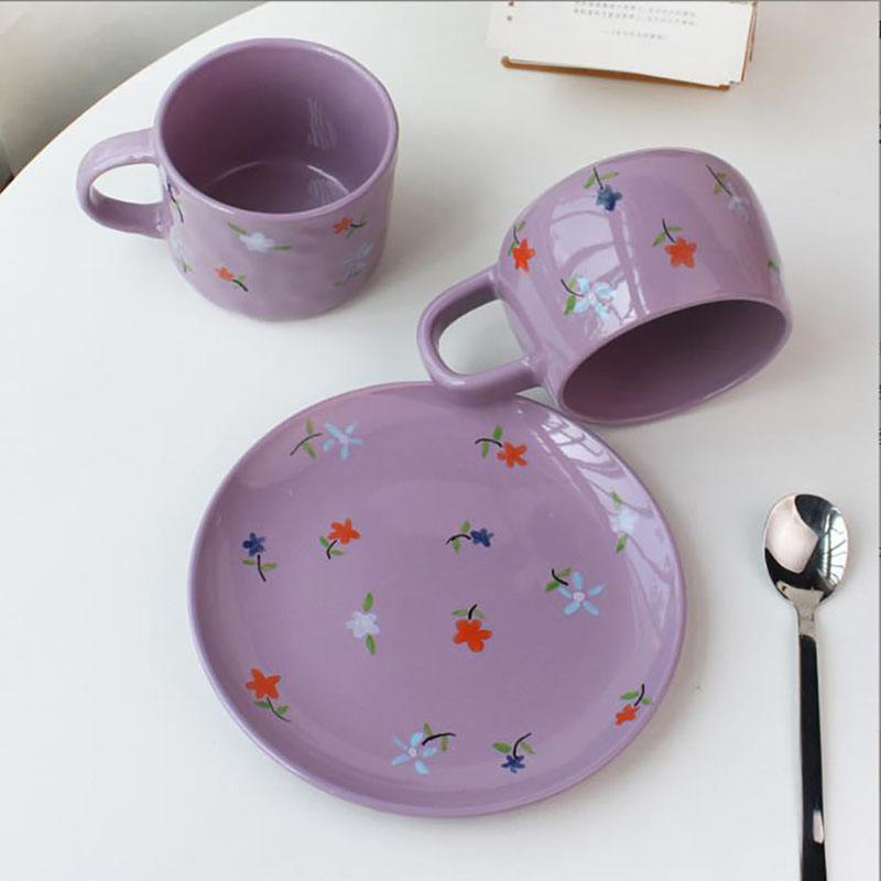 Creative Fresh Floral Afternoon Tea Ceramic Mug Exquisite Ins Hand-molded Breakfast Coffee Cup and Plate