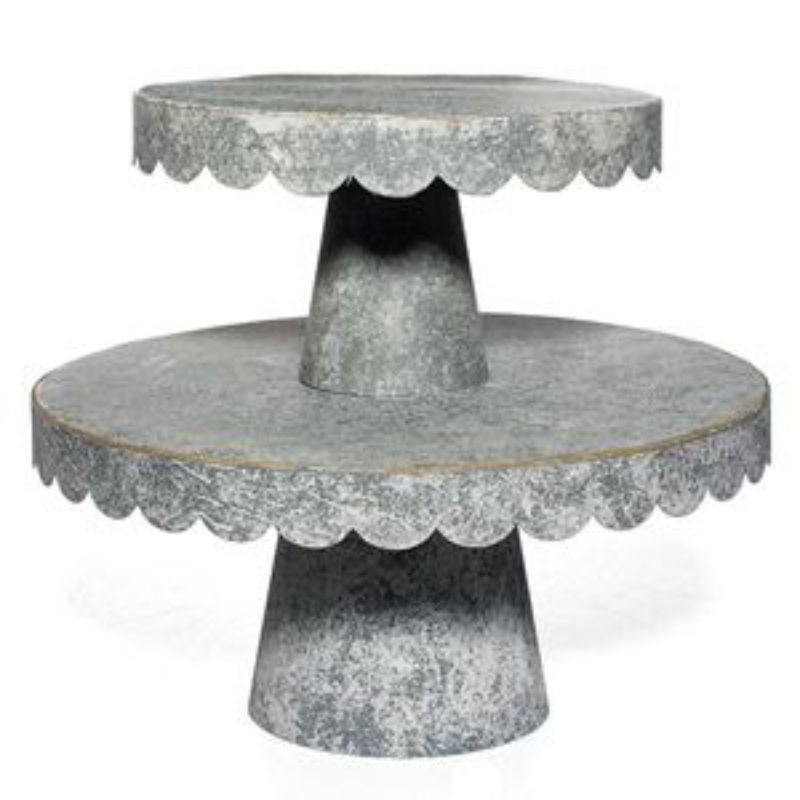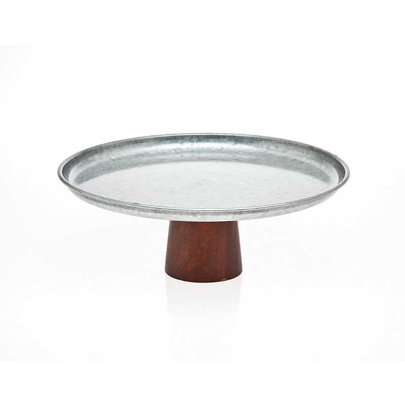 Creative Galvanized Metal Cake Stand With Wood Pedestal Base Round Serving Tray For Dessert Display Parties And Weddings