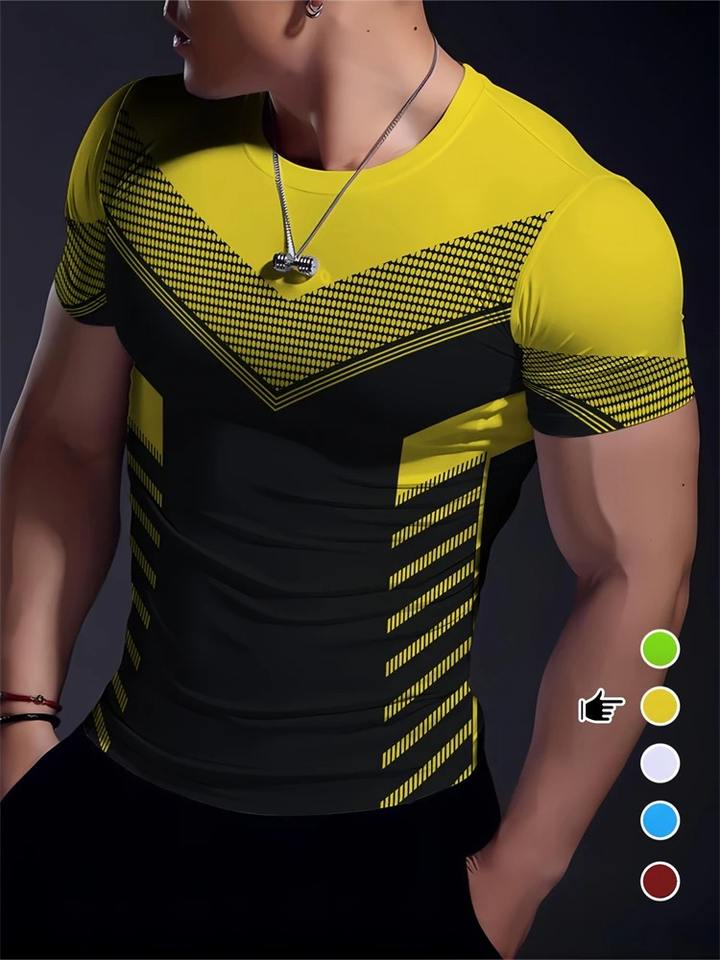 Creative Geometric Pattern Printed Men's Summer T-shirt 100% Cotton Short Sleeves Comfortable Breathable for Outdoor Sports