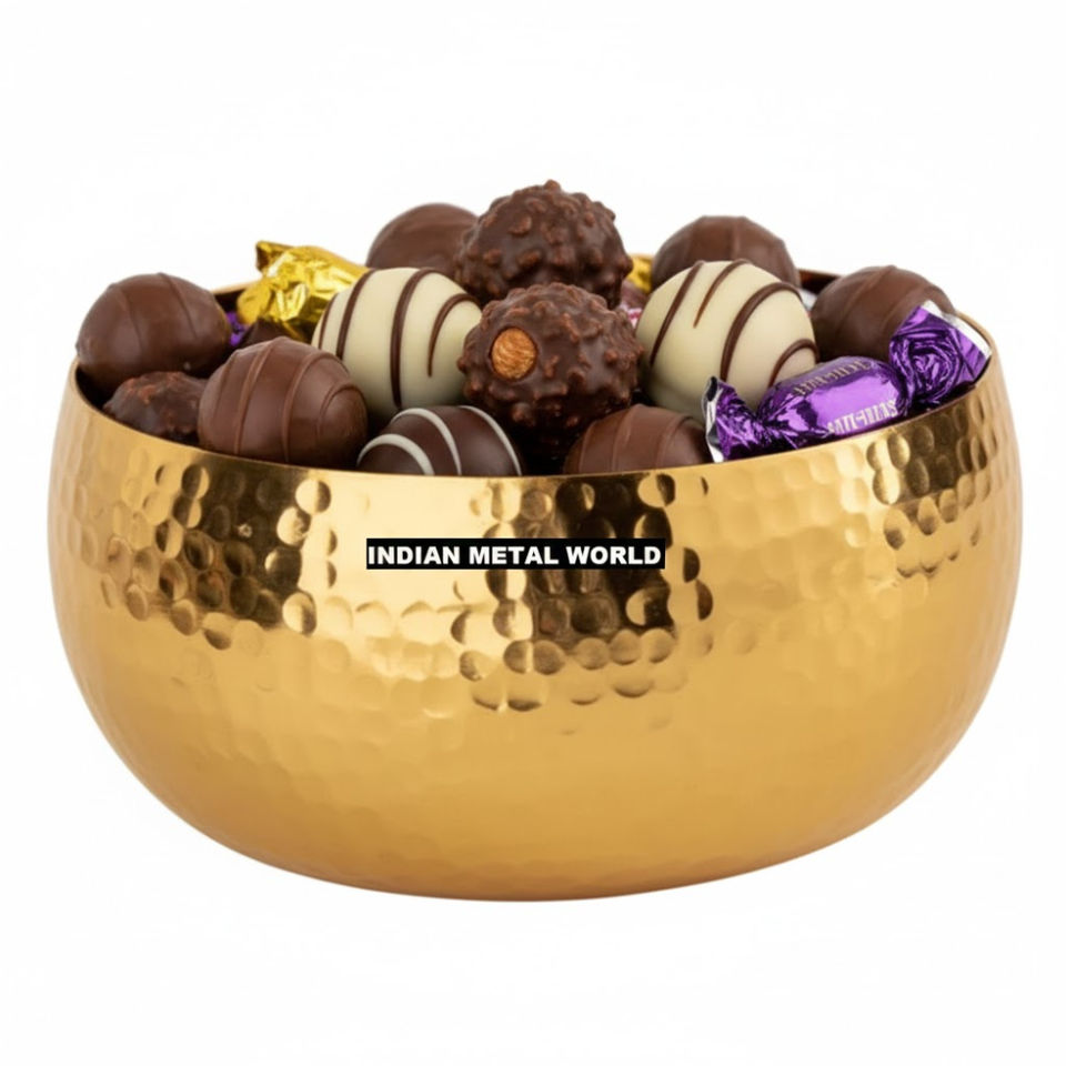 Creative Golden Hammered Decorative Metal Serving Bowls Set Handmade Brass Finish Kitchen Tableware Dessert Bowl Home Decor