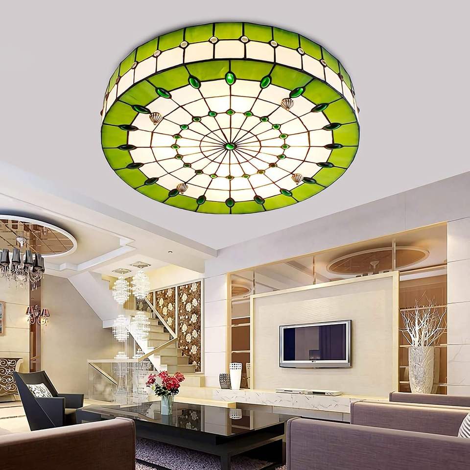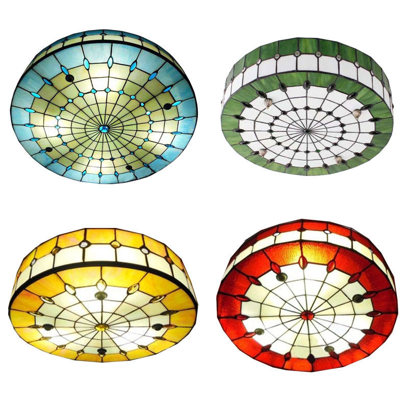 Creative Handmade Mediterranean LED Tiffany Style Stained Glass Steel Frame AC Chandelier Ceiling Light 12 Inch Lovely Guy 2700K
