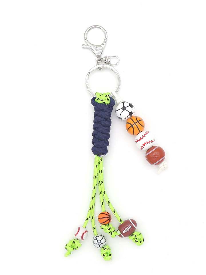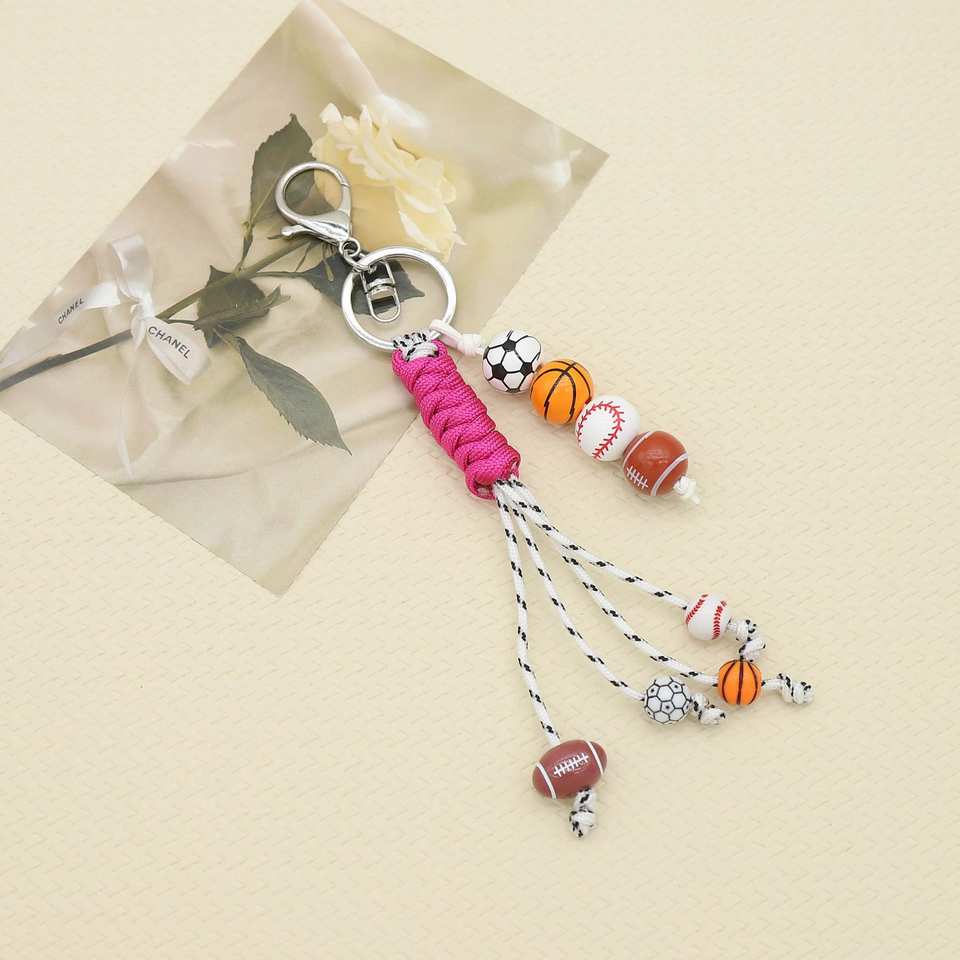 Creative Handmade Woven Rope Basketball Baseball Football Wooden Beads Keychain Leisure Sports Bag Charms Pendant Car Key Chain
