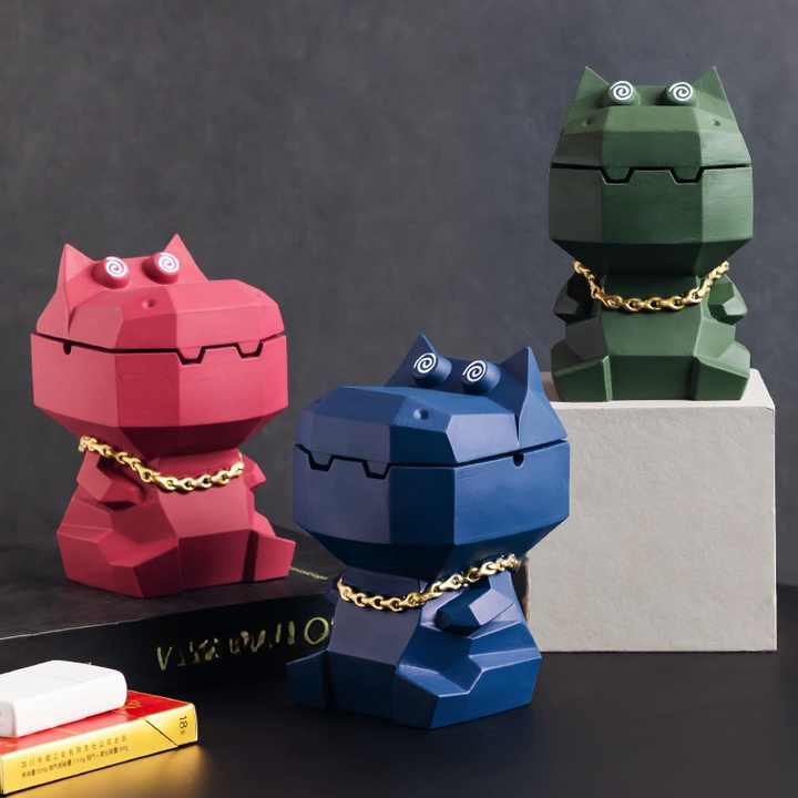 Creative Hippo Ashtray With Cover Resin Cute Animal Storage Jar Windproof Home Decoration Gift Desktop Smoke Odorless
