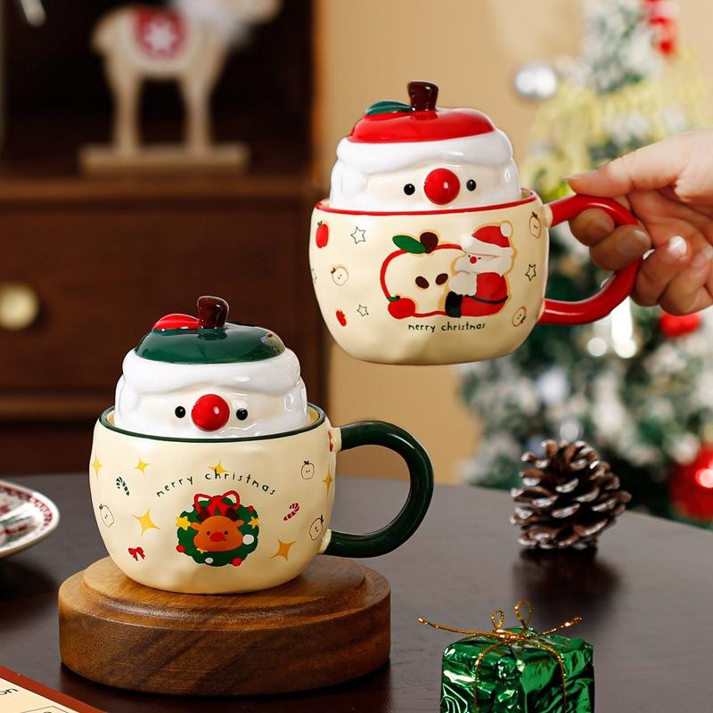 Creative Household Apple Christmas Cups Trendy Ceramic Mugs with LIDS High Appearance Level Coffee Water Cups