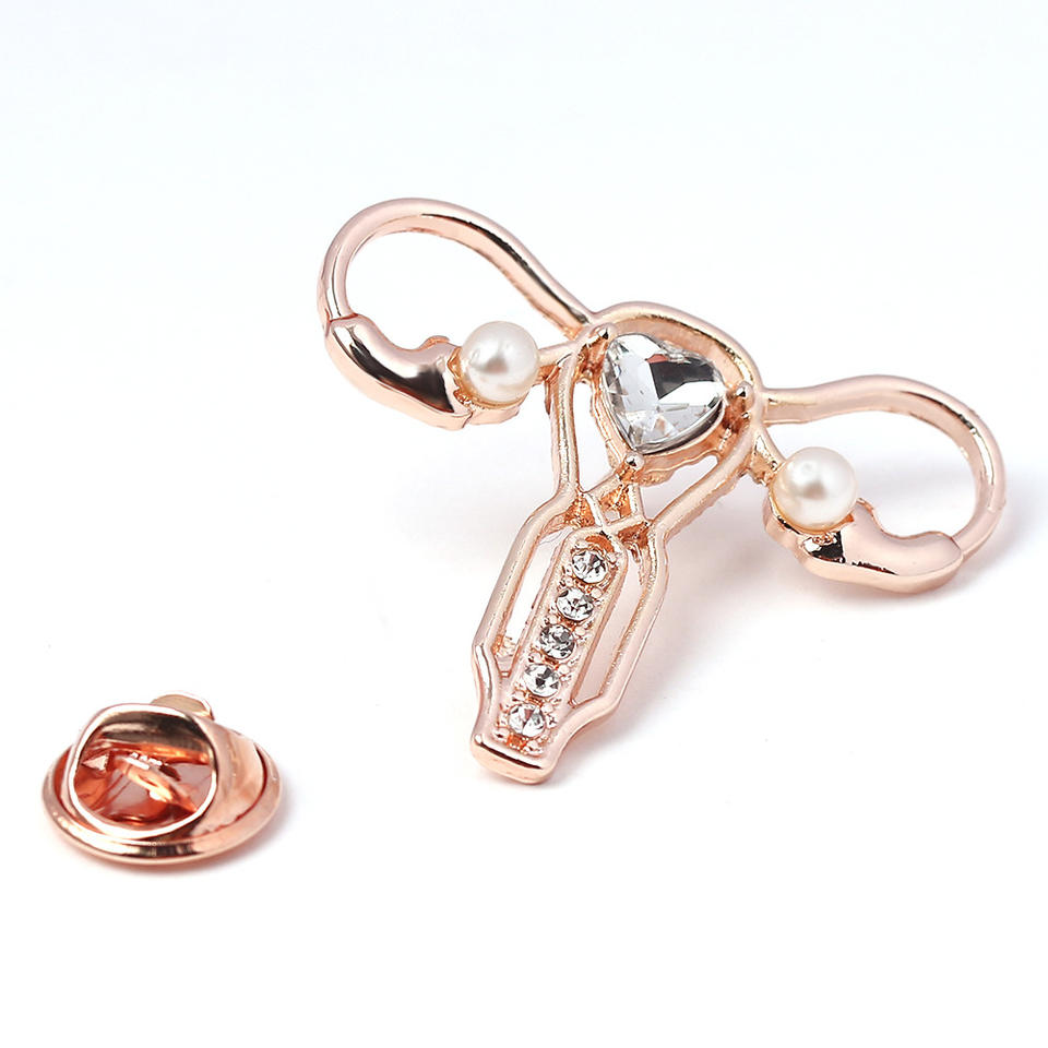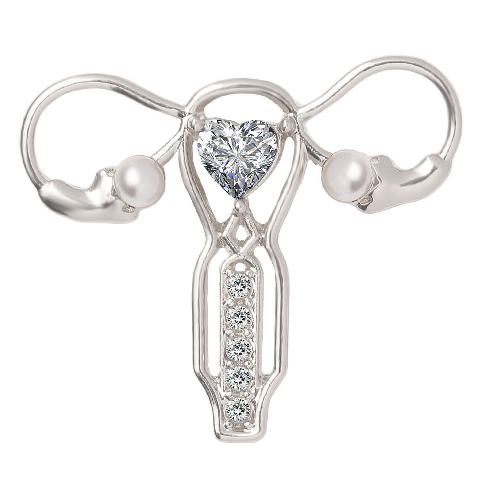Creative Human Anatomy Organ Brooches Heart Display Pin Maternity Womb Brooch Shiny Rhinestone Metal Souvenir Plating Modern