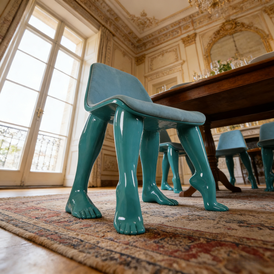Iconic human feet-shaped legs, eye-catching conversation piece