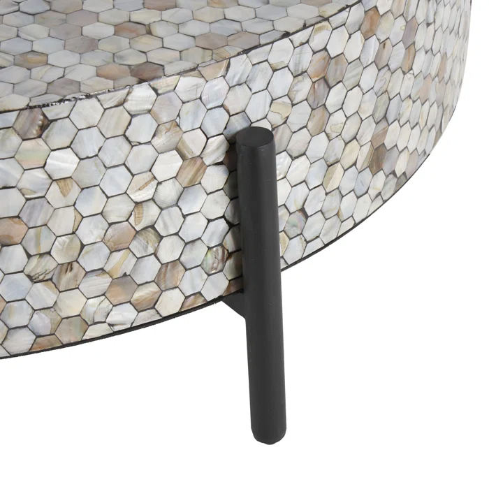 Creative Indoor Home Furniture Round Mother-Of-Pearl Inlay Side Table Bamboo Coffee Table with Mosaic Shell for Living Room