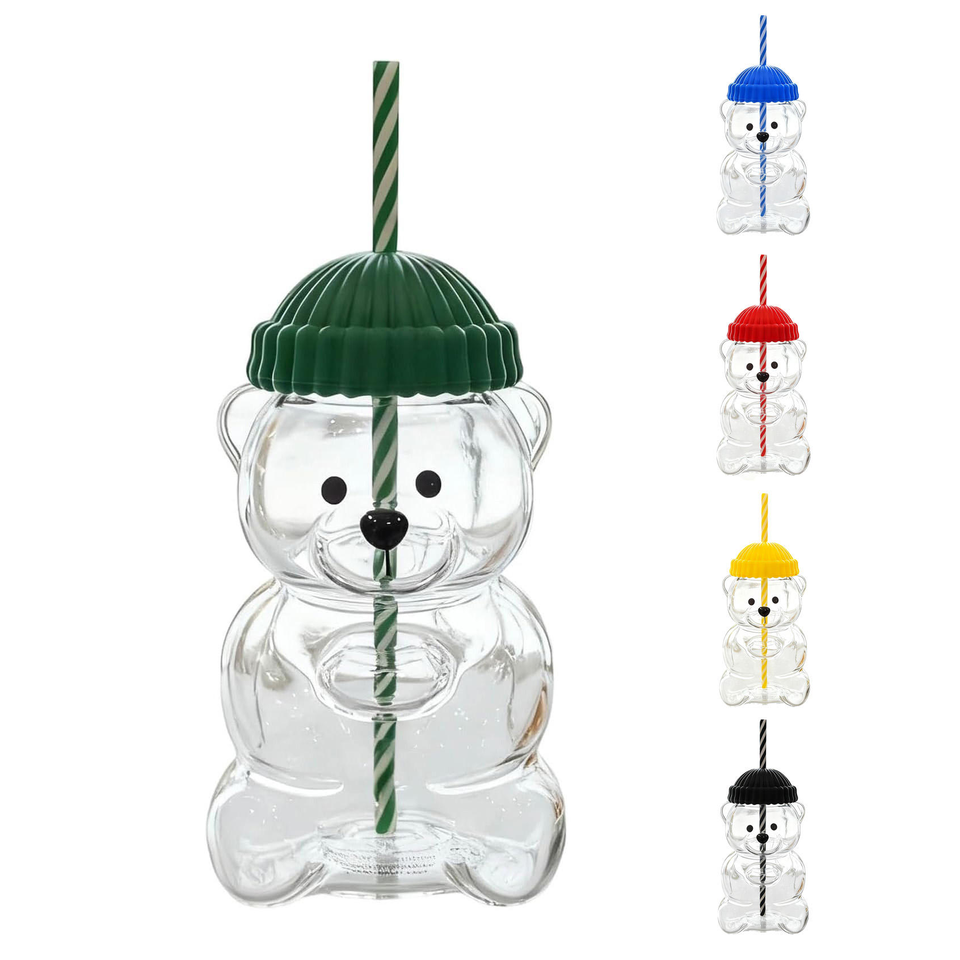 Creative Ins Style Cute 500ml Starbuck Teddy Bear Glass Beverage Tea Juice Milk Water Coffee Cup with Straw and Lid
