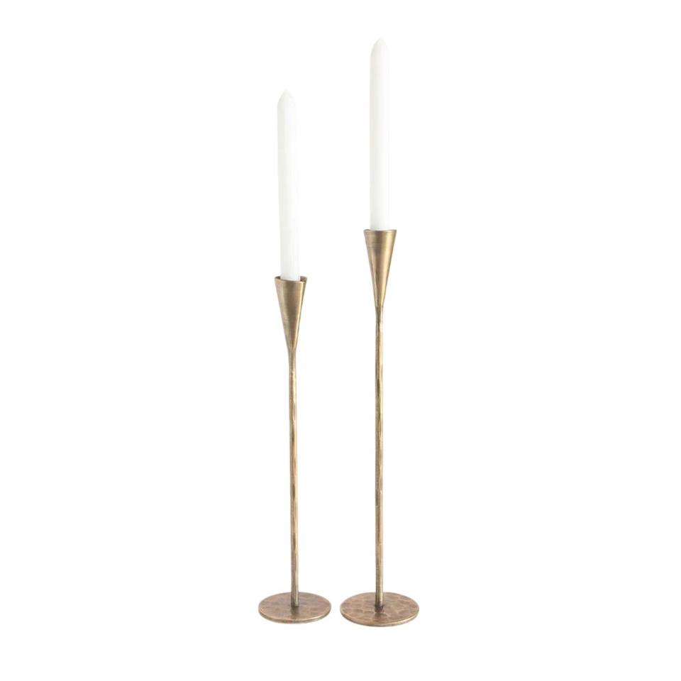 Creative Iron Candle Stands Set Of 2 Modern Textured Brass Finish Taper Candle Holders Candlestick For Indoor Lighting Accessory