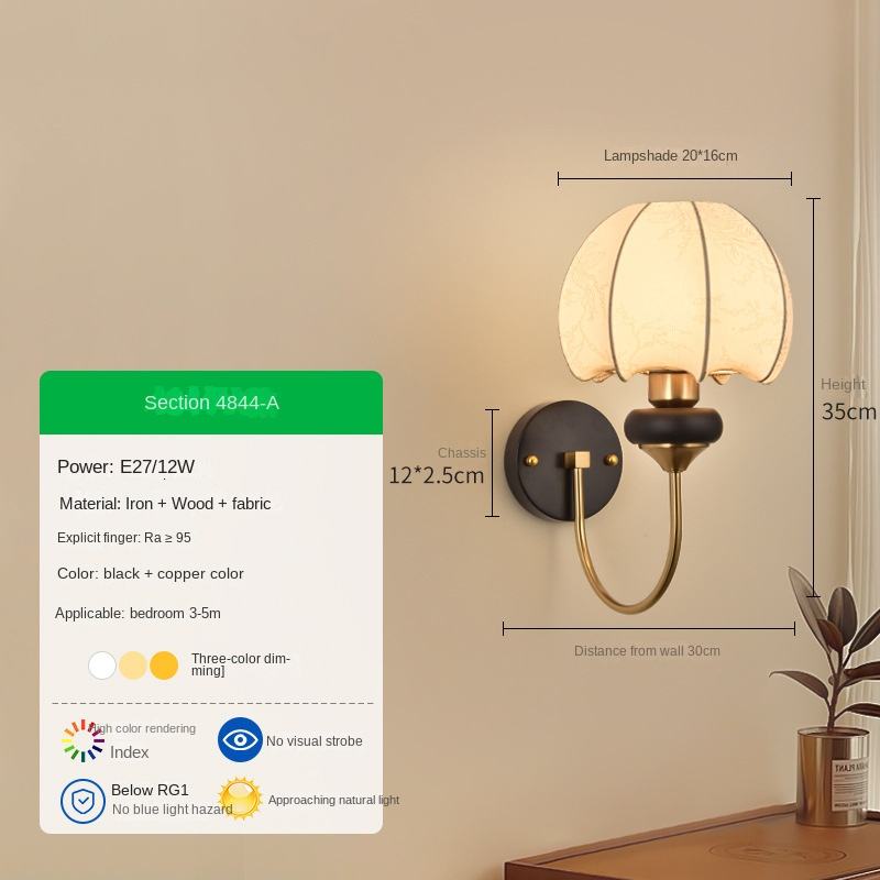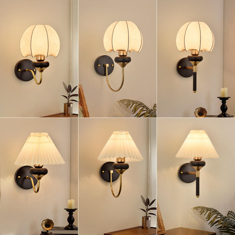 Creative LED Indoor Wall Sconces Luxury Fabric Shade Night Light for Living Room Bedroom Home Corridor Lamp Body Material