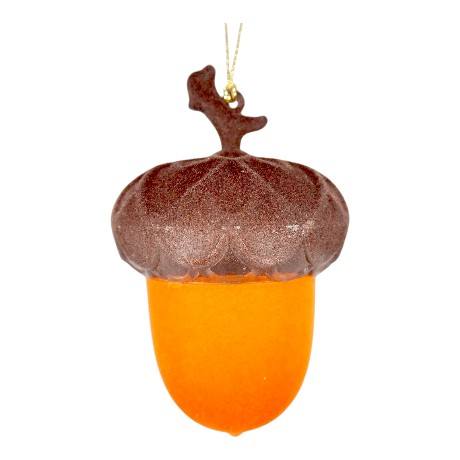 Creative Latest Design Christmas New Year Household Hanging Decoration Dark Brown Orange Flocked Acrylic 3D Acorn Ornament