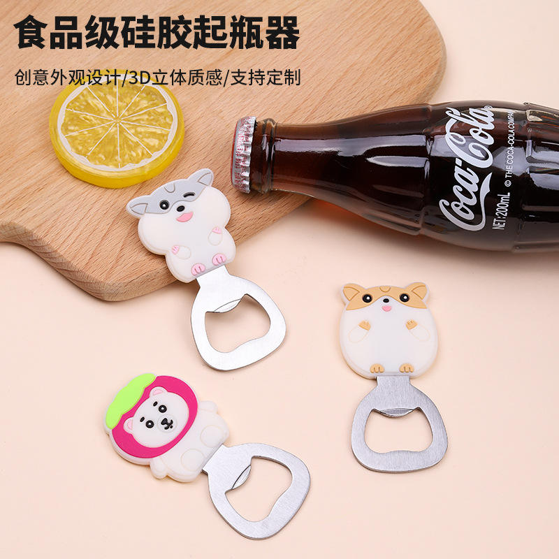 Creative Magnetic Stainless Steel Bottle Opener Silicone Refrigerator Adhesive Beer Bottle Screwdriver Utensils