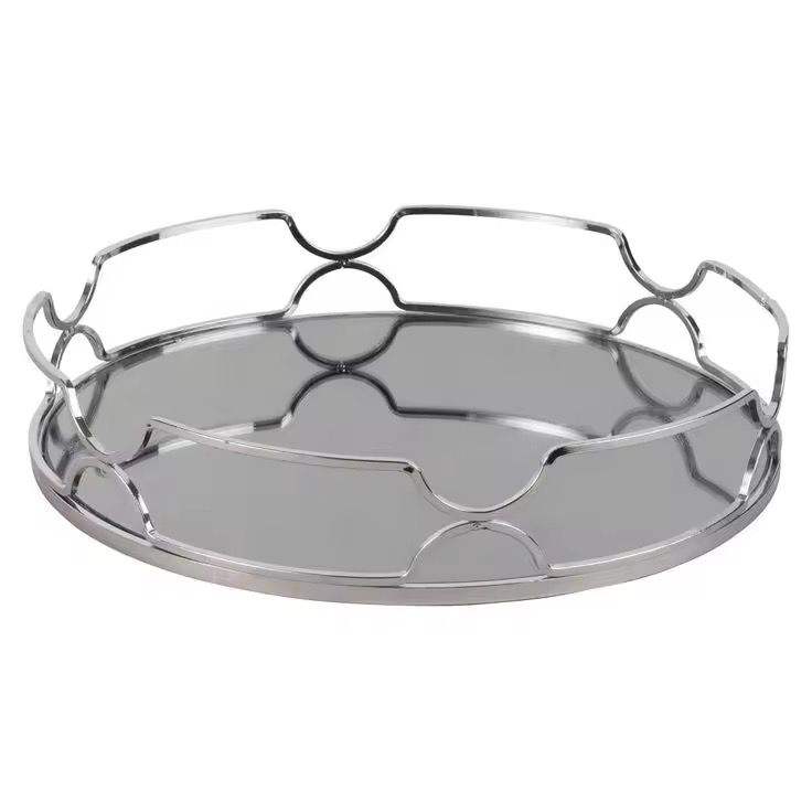 Creative Mirror Tray Round Metal Makeup Tray Cosmetic Perfume Tray For Dresser Bathroom And Bedroom Countertop Organizer Tray