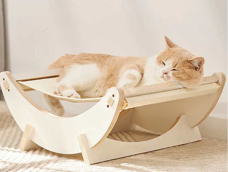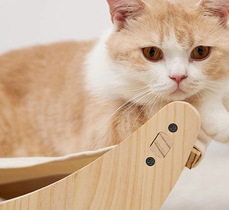 Creative Modern Cat Bed for All Seasons Removable Washable Solid Wood Rocking Hammock Cradle