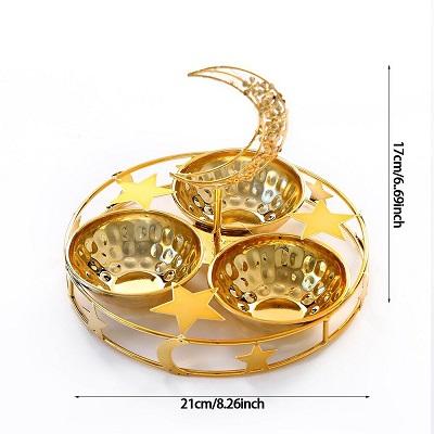 Creative Moon Star Ramadan Kareem Table Decorations Hollow Crescent Snack Trays Gold Metal Eid Mubarak Food Serving Tray