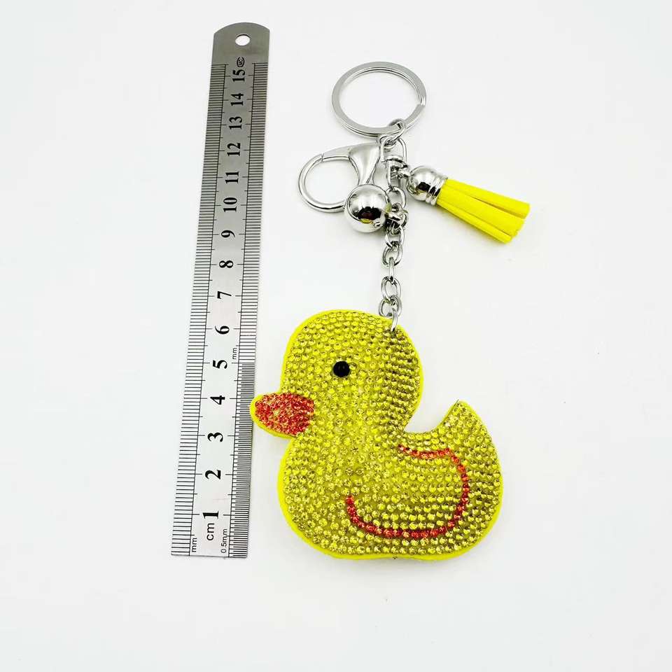 Creative New Yellow Duck Keychain Cartoon Animal Studded with Diamond Light Hot Pressed Crystal for Women's Bag Decoration