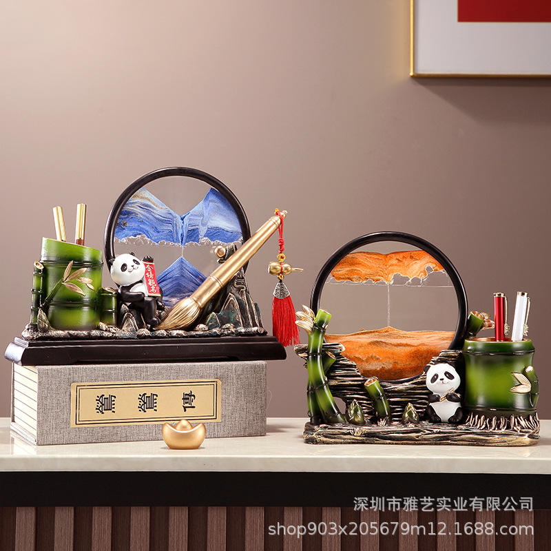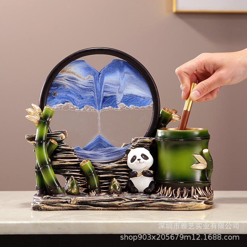 Creative Panda Sculpted Epoxy Resin Pen Holder Quicksand Painting Decoration Living Room Entrance Study Bookcase Office