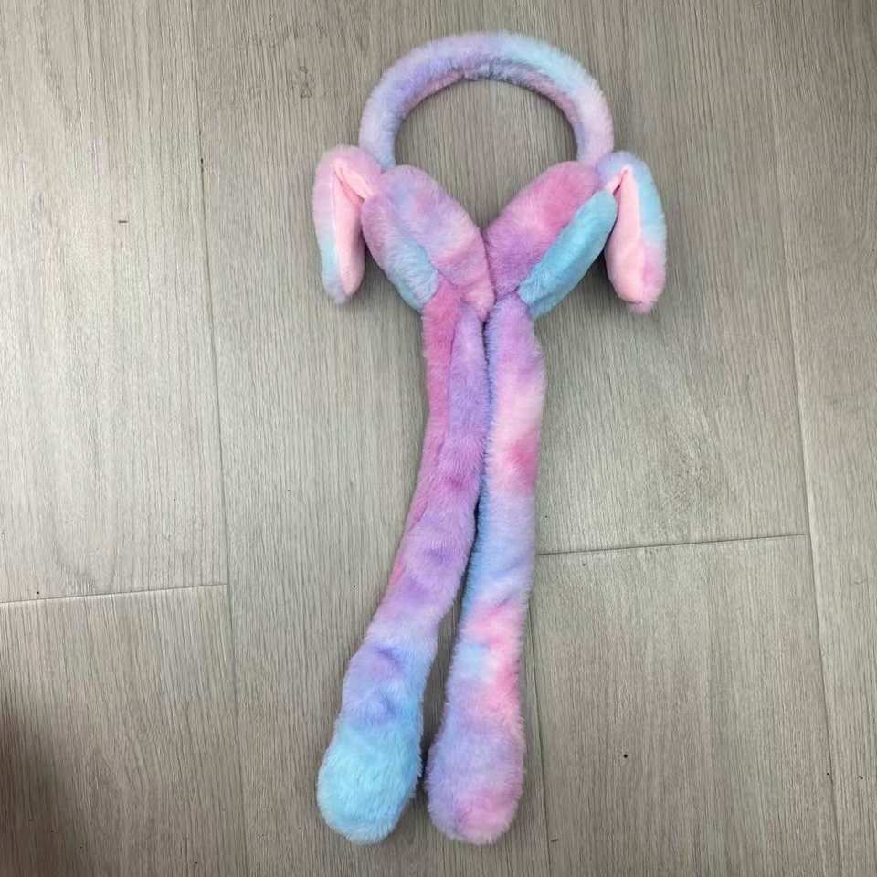 Creative Plush Rabbit Ear Muffs Soft Colorful Winter Warm Earmuffs Moving Jumping Ears Ear Protection Cover for Christmas Hats